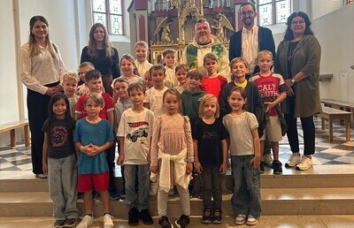 Mit Gottes Segen starteten die Volksschulkinder in das neue Schuljahr! Pfarrer Robert Schneeflock spendete den Schulanfängern den Einzelsegen.