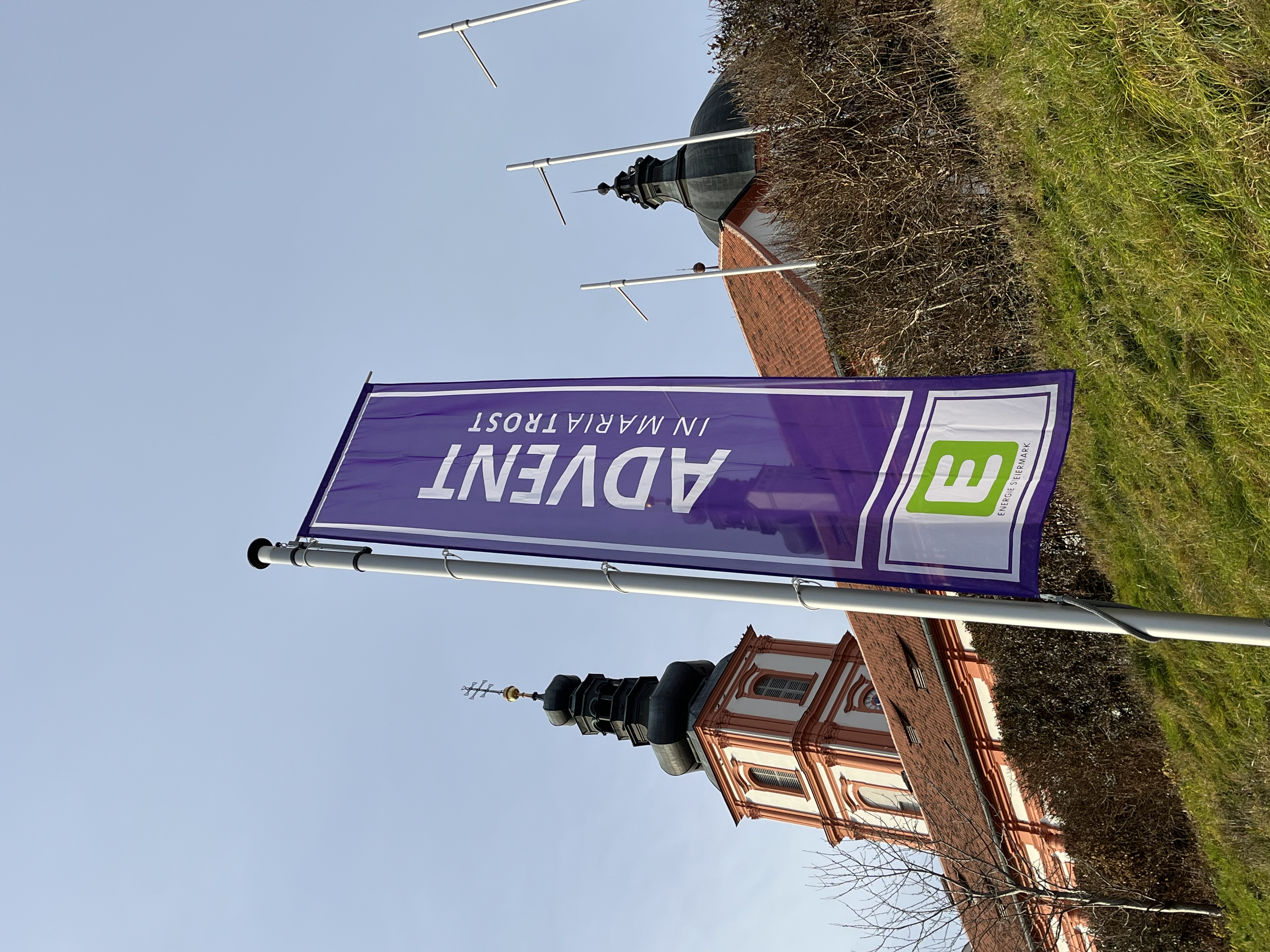 Da flattert etwa: „entdecke MARIATROST“, „gestalte MARIATROST“,  genieße MARIATROST“. – Im Rahmen einer Feier mit Sponsoren, Pfarraktiven und Freunden segnete Diözesanbischof Wilhelm Krautwaschl die Fahnen und wünschte viel Gelingen für die weiteren Schritte des für die steirische Kirche wichtigen Projektes.