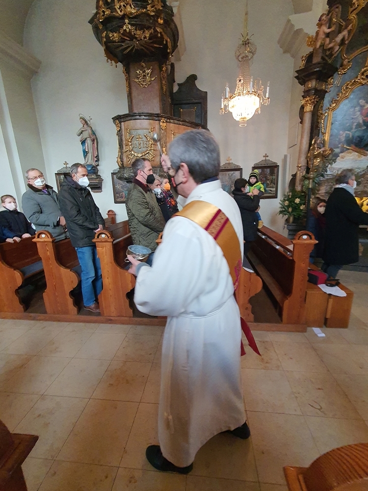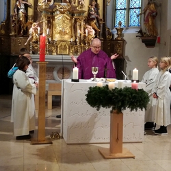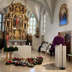 Am Christtag feierte Vikar Norbert Glaser mit der Pfarrgemeinde das Hochfest der Geburt Christi. Das Weihnachtsevangelium und seine Bedeutung für uns heute standen im Mittelpunkt des Festgottesdienstes, der vom Kirchenchor musikalisch gestaltet wurde. Unter der Leitung von Organistin Magdalena Moser wurde neben traditionellen Weihnachtsliedern eine Messe von Karl-Bernhardin Kropf gesungen, die in einstimmiger Fassung - Gotteslob 715 – von den Gläubigen mitzusingen war. So erlebten wir in unserer weihnachtlich strahlenden Kirche einen wahrlich festlichen Weihnachtsgottesdienst!