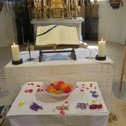 In einem schönen Blumenritual konnte jede und jeder selber in Gedanken aussprechen, was Jesus für sie oder ihn bedeutet. Vielleicht ist er Freund und Begleiter, vielleicht Sonne und Halt im Leben und noch vieles mehr.