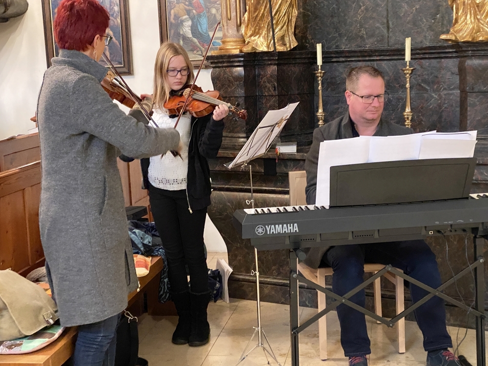 Mit Geigen, Querflöten und Gesang gestalteten Schülerinnen der Musikschule Premstätten mit ihren Lehrerinnen die heilige Messe zum 4. Adventsonntag. Am Keyboard und an der Orgel fungierte Musikschuldirektor Klaus Eder.