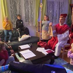 Nach der liebevoll gestalteten Nikolaussendungsfeier am 5.12. zog die Schar der Nikoläuse zu den Häusern, wo sie von den Kindern bereits sehnsüchtig erwartet wurden.