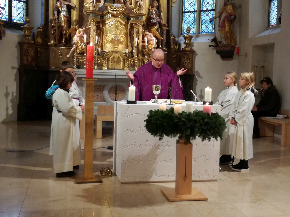 Am 1. Adventsonntag zelebrierte Vikar Gerhard Hatzmann die heilige Messe, segnete zu Beginn die Adventkränze und machte in seiner Adventpredigt Mut, es Gott gleich zu machen und Mensch zu werden. Musikalisch gestalteten die Holzbläserensembles der Musikschule Premstätten den Gottesdienst mit schönen adventlichen Klängen.