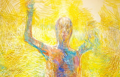 Darstellung der Kreuzigung von Guillaume Bruère. Das Bild ist Teil der Serie 'Museumsbilder - Religious Themes' und war in der Ausstellung 'Vulgata' im Kulturzentrum bei den Minoriten zu sehen.